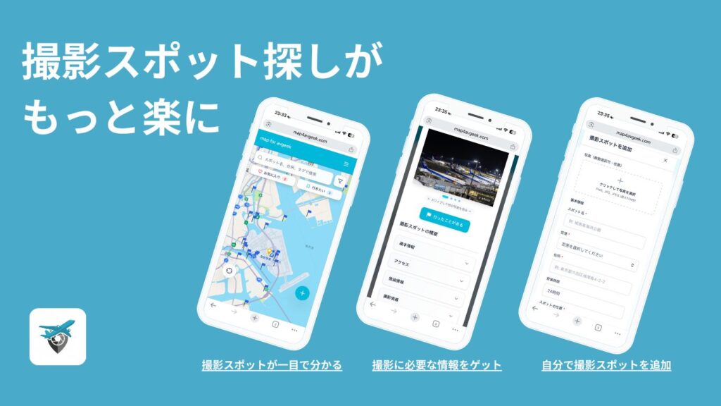 また、撮影スポットや飛行機写真の追加をすることで同じ趣味を持つ同志に情報を共有することができます。