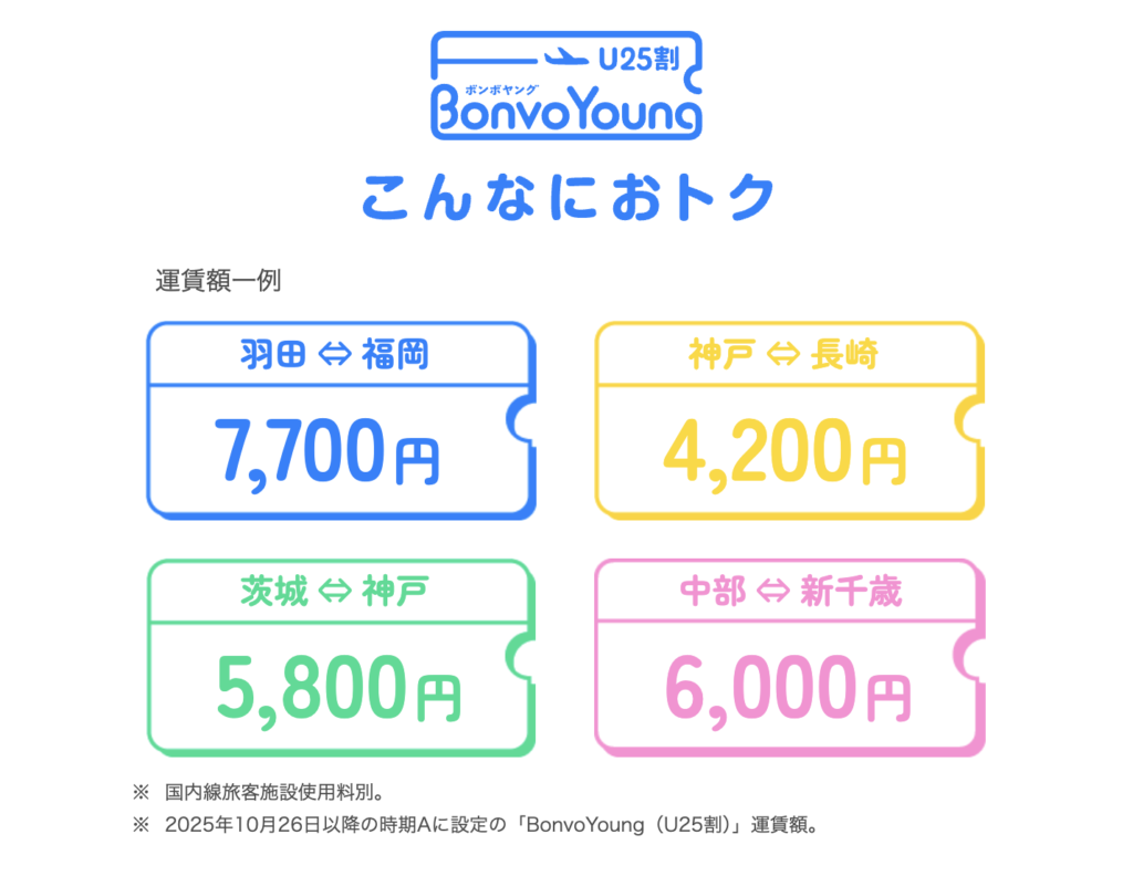 スカイマークは、2025年8月7日11時より新運賃「BonvoYoung U25割」を販売開始しました。